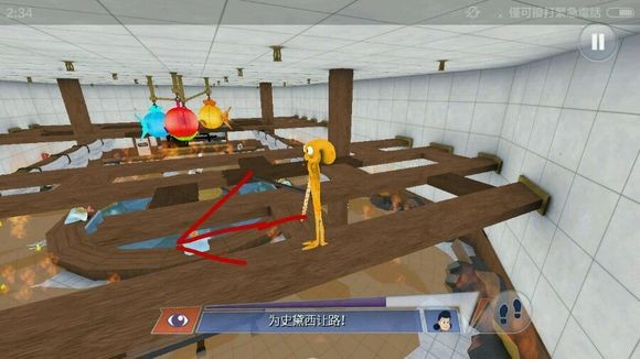 朝前方大门行进,点击门上的按钮后切换回触手形态,即可推动门扉继续前进