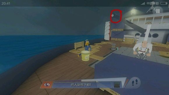 第二条位于悬挂船只的吊机上,具体位置见图示红圈区域,操作简单但对精准度要求较高