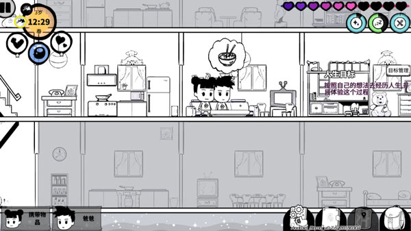 游戏支持时间加速功能,玩家能与家中电视、桌椅、玩具等物品互动,触发各类事件或获取资源。