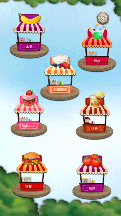 商店中提供丰富的水果、饮料等道具,供你随时选购。