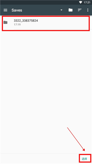 此时会看到之前创建的【3322】存档,直接点击下方的【选择】按钮即可。部分手机可能会弹出权限请求提示,允许访问即可正常使用。