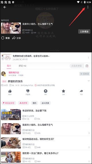 点开感兴趣的视频,在播放页面右上角找到三个点组成的菜单按钮并点击。