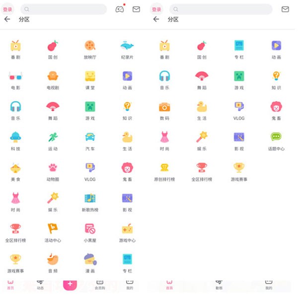分区数量的精简并非内容缩水,而是剔除了如课堂、新歌热榜等使用频率较低的冷门板块,海外版沿用了多年沉淀下来的经典分区结构,更聚焦于主流用户的核心兴趣。