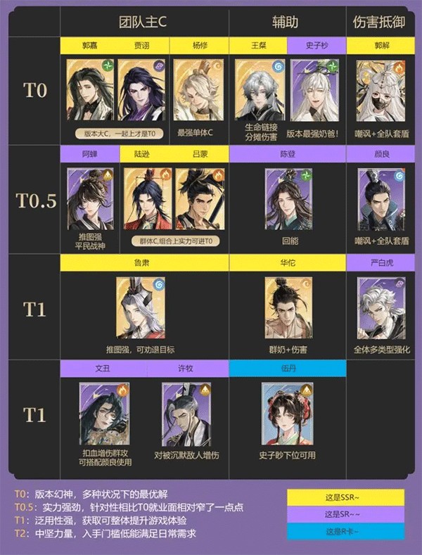 前期关卡推荐阵容:1至3章可使用史子渺、杨修、鲁肃、阿婵与陈登组合;4至5章建议调整为王粲、杨修、史子渺、颜良及阿婵;6至7章则可搭配王粲、杨修、颜良或郭解、史子渺,辅以孙尚香或阿婵应对更高难度挑战。
