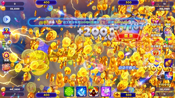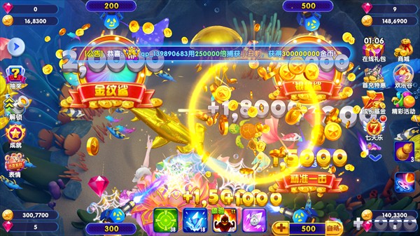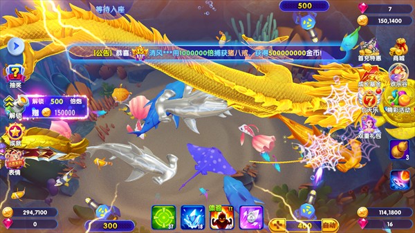 沉浸式3D视觉体验,画质细腻逼真,登录即赠海量金币,带来耳目一新的捕鱼乐趣。