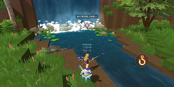 抛竿后,屏幕右侧会出现鱼钩图标,角色头顶则显示浮标,进入等待状态。当浮标与鱼钩同时变为绿色,代表鱼已上钩,此时需迅速点击鱼钩完成收竿,否则鱼会逃脱。