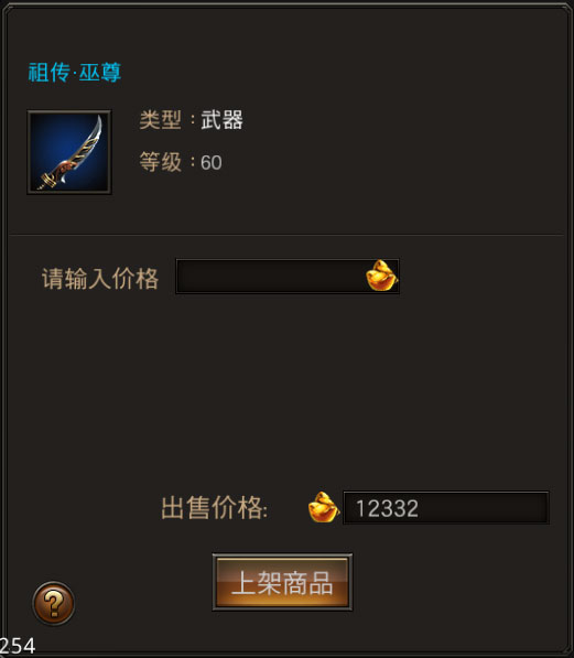 在出售界面选择背包中的物品进行上架。