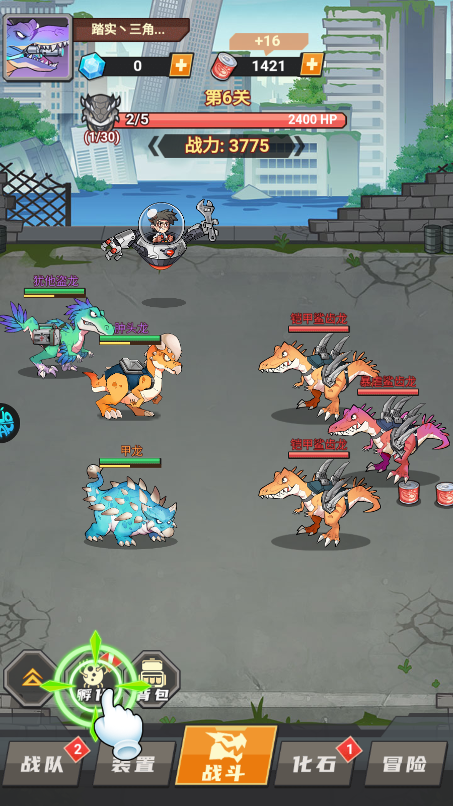 参与战斗可获得化石,用于解锁全新恐龙伙伴。