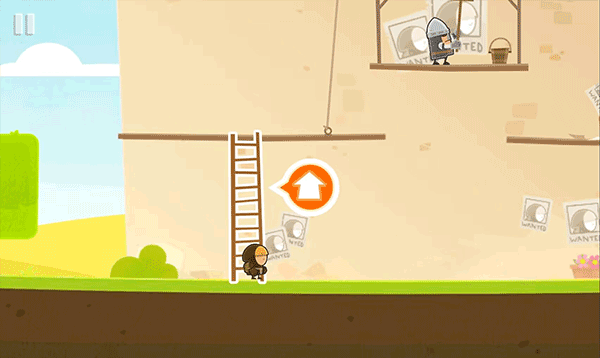 操控角色靠近楼梯,点击箭头指示爬上高处。