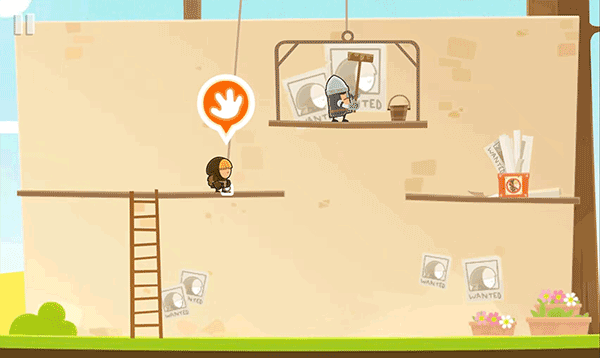 到达指定位置后,点击手掌图标松开绳索,使中间平台坠落。