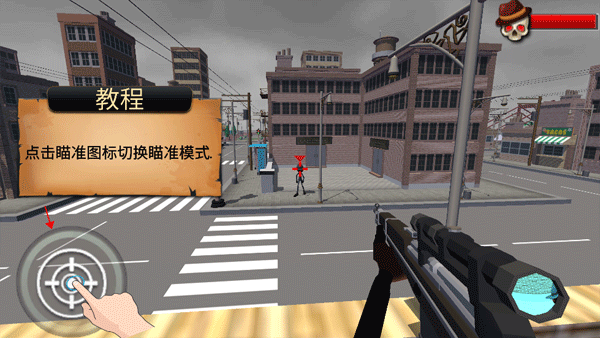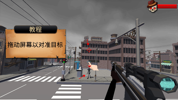 初次游玩会有新手引导,通过滑动屏幕控制镜头方向,对准敌方目标进行瞄准。