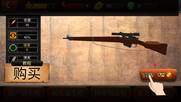 积累足够黄金后,可解锁专属狙击枪,选择心仪型号并支付对应费用即可完成购买。