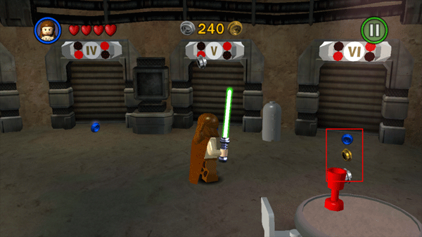 角色靠近地面散落的蓝色、银色或金色乐高盖子时,上方收集计数会相应增加。