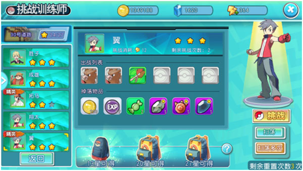 挑战训练师:获取精灵卡牌、进化石碎片