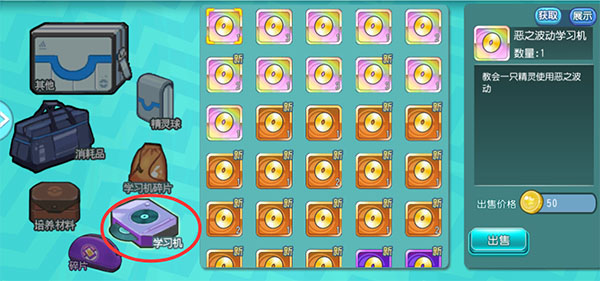 当前版本中,学习机无法在背包界面直接使用,需进入精灵养成界面,点击“技能”后再选择“技能学习机”进行操作。