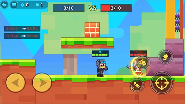 战斗中通过左右按键操控角色移动,使用主武器精准射击敌人,亦可投掷炸弹制造范围伤害,在像素战场上展开酣畅淋漓的对决。