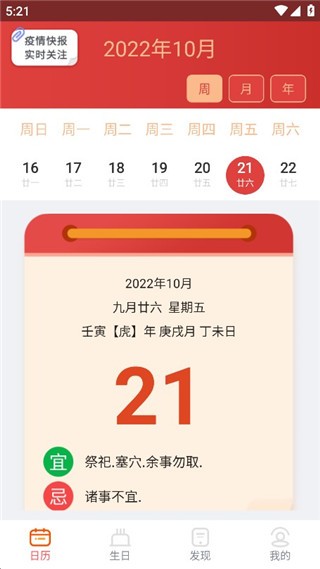 下载并打开软件即可查看当天的详细日历信息
