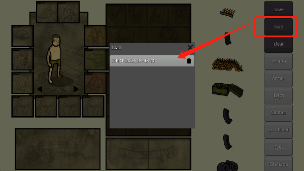 进入“load”菜单,选择先前保存的存档,便能迅速还原已设定好的搭配方案。