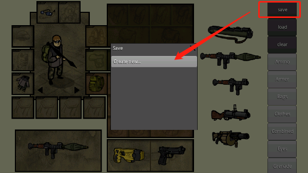 角色DIY完成后,向上滑动界面找到“save”按钮,点击其中的“create new”即可快速保存当前配置。
